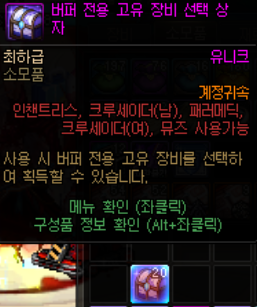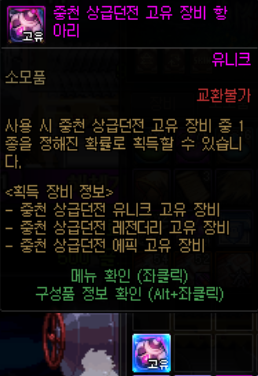 - 115레벨 유니크 항아리: 부캐 또는 레어 장비 착용 중인 캐릭터에게 유용