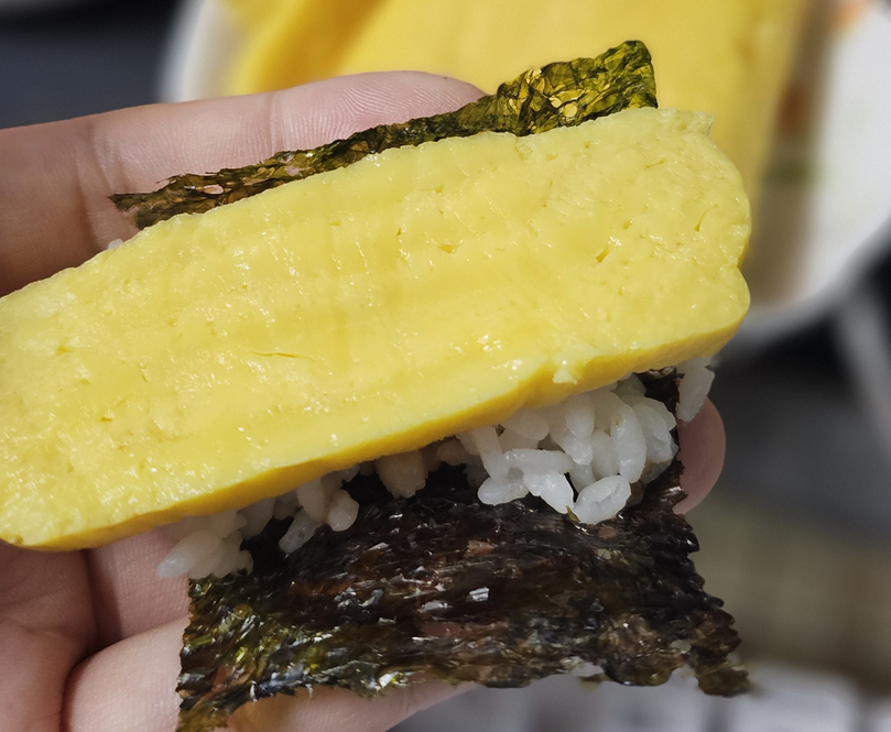 계란 자체에 달달하게 양념이 싹 배어있어서, 귀찮게 밥에 초대리(단촛물)를 하거나 와사비를 안 넣어도 밥솥에 있는 맨밥이랑 아주 찰떡궁합입니다.