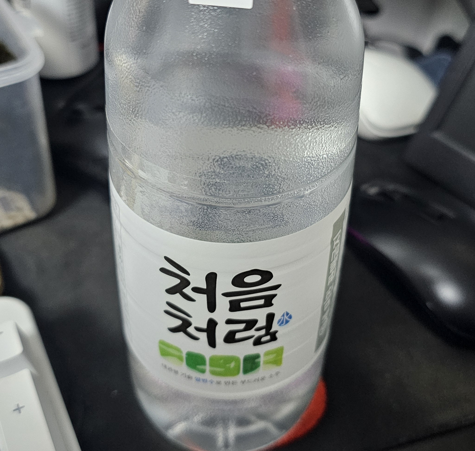 술은 동네 식자재 마트에서 2,400원인가? 세일하길래 냉큼 집어온 처음처럼 페트병입니다. 아주 시원하게 한잔 들이켰네요.