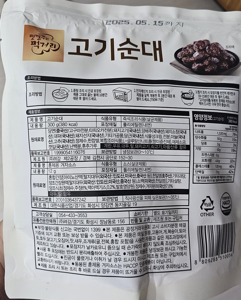 - 제품명: 맛깔나는 먹거리 고기순대 (300g)