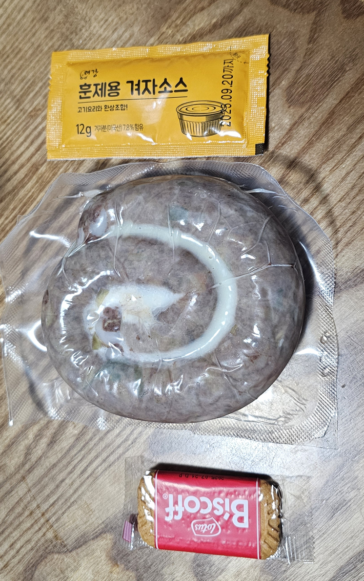 구성은 진공포장된 순대 + 겨자소스.