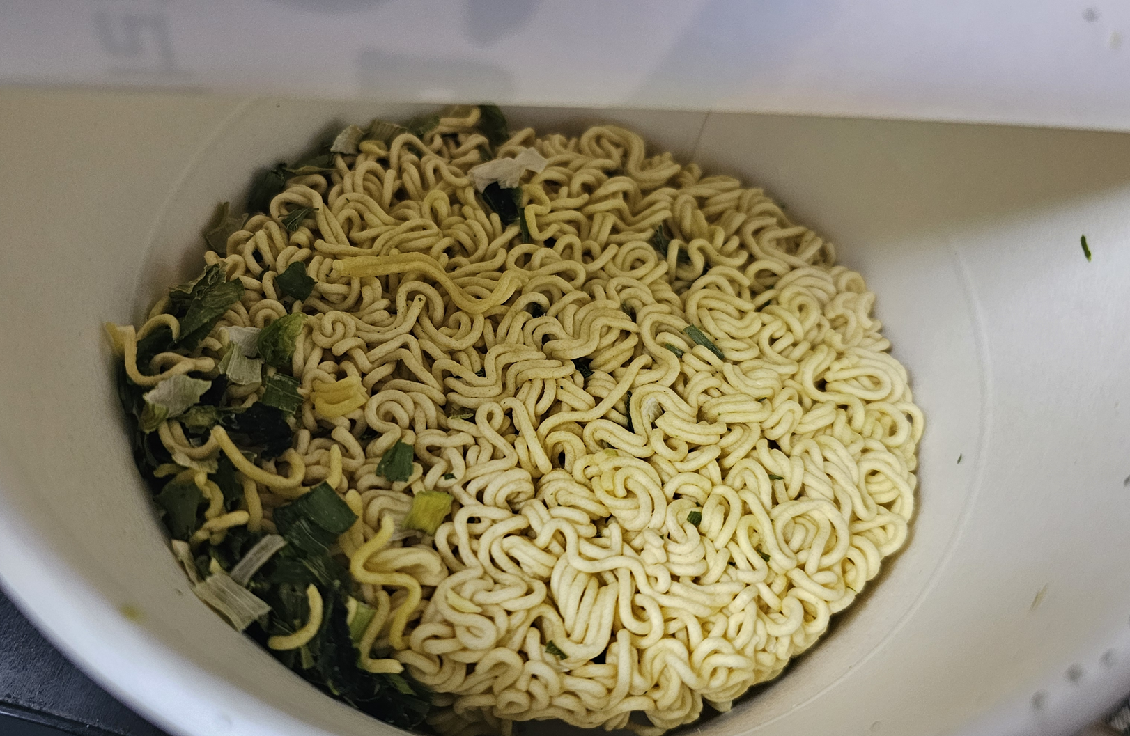 저는 정수기 뜨거운 물(85도)로 5분 정도 기다렸습니다. 컵라면 뚜껑에 ‘이지락’이라고 많이 쓰지만, 저는 젓가락으로 눌러주는 편이 더 편하더라고요 ㅎㅎ