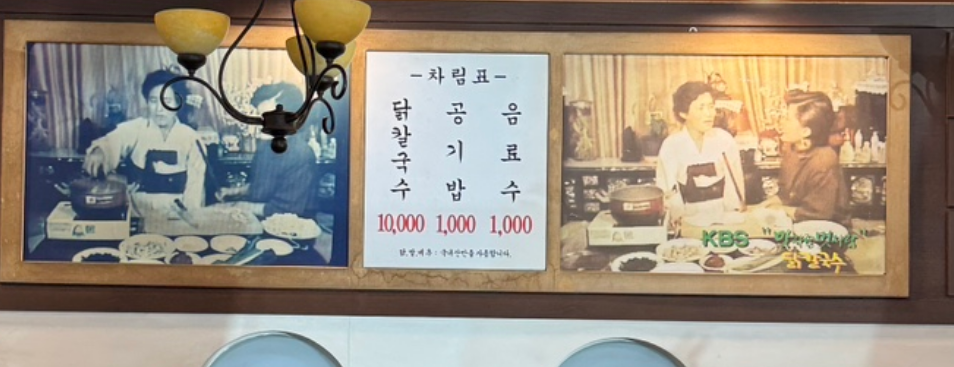 기본 메뉴판을 보면 닭칼국수, 공기밥, 음료수 딱 3개뿐입니다. 하지만 이곳에는 아는 사람만 아는 바지락칼국수라는 히든 메뉴가 있습니다. 물에 빠진 닭을 싫어하시거나 바지락을 더 좋아하신다면 주문할 때 바지락칼국수로 달라고 말씀하시면 됩니다. 가격은 1만 원으로 동일합니다.