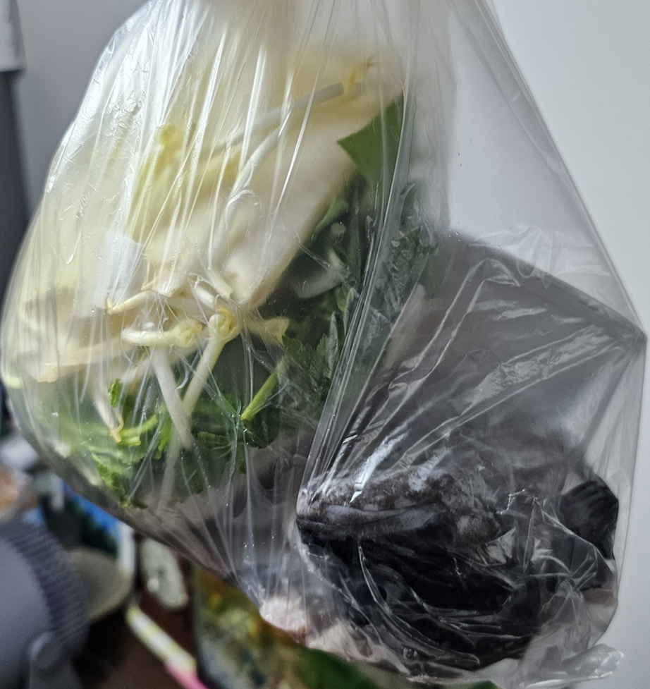 매운탕은 광어 대신 우럭 서더리를 주셨는데, 간단한 채소와 양념장까지 챙겨주셨습니다. 사장님이 "물만 붓고 끓이면 된다"고 하셨는데, 저는 한번 헹궈서 끓였습니다. 라면 사리 넣고 밥이랑 같이 먹으니 국물이 시원하니 좋았습니다.