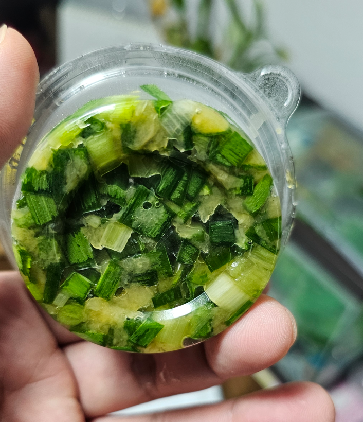 특히, 참기름 양념은 고소한 향이 강하게 나서 초장에 섞어 먹기 딱 좋았습니다. 다만, 양이 살짝 부족한 느낌이라 다진 마늘을 추가로 더 준비하면 좋을 것 같아요.