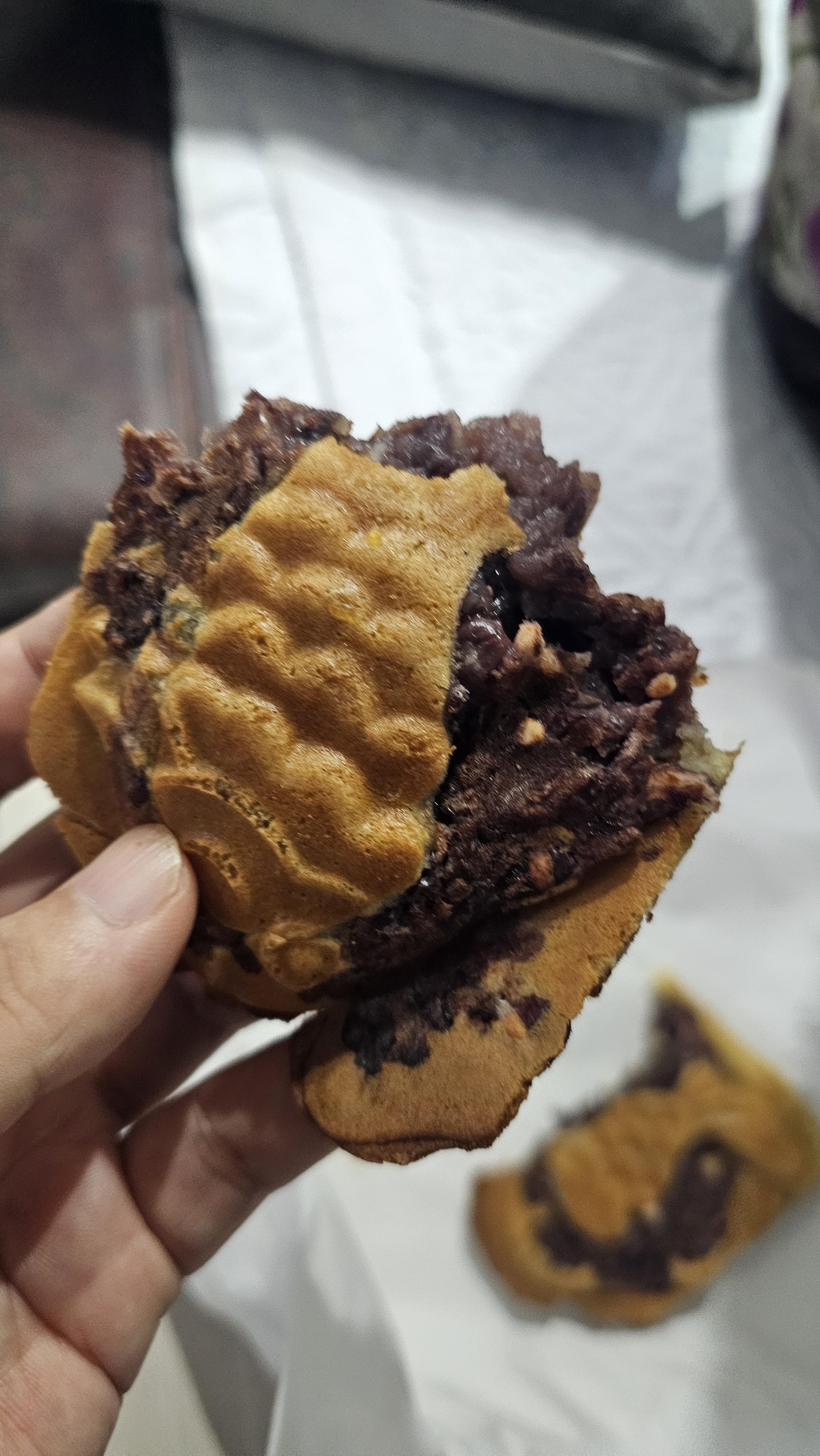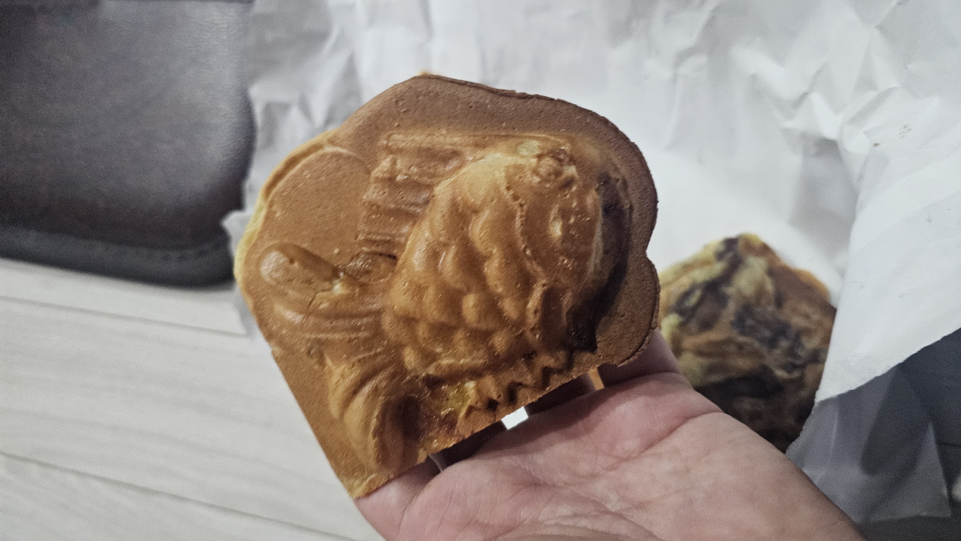 슈프림 붕어빵입니다 겉모습은 반죽이 조금 많이 들어가서 붕어틀을 넘어간 느낌? 입니다. 하지만 요즘 틀까지 해서 네모모양으로 만드는 도비빵? 도 있기에 모습은 상관없이 패스 하고 바로 먹어봅니다. 음 역시 슈크림이라 달달하네요. 붕어틀 옆으로 삐져나온부분은 바삭하고 쫄깃하네요. 의외로 맛이 좋은데 슈크림이 너무많아 달달함이 좀 쌘느낌 입니다.