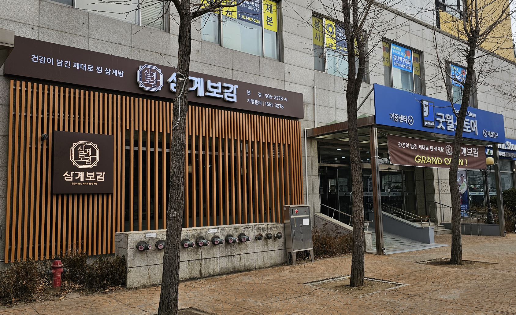 매장 정면에서 보면 입구가 헷갈릴 수 있는데, 오른쪽 굿윌스토어 방향으로 들어가면 삼계보감 입구가 있습니다. 왼쪽 입구는 유니테크빌 빌딩으로 연결되니 주의하세요.