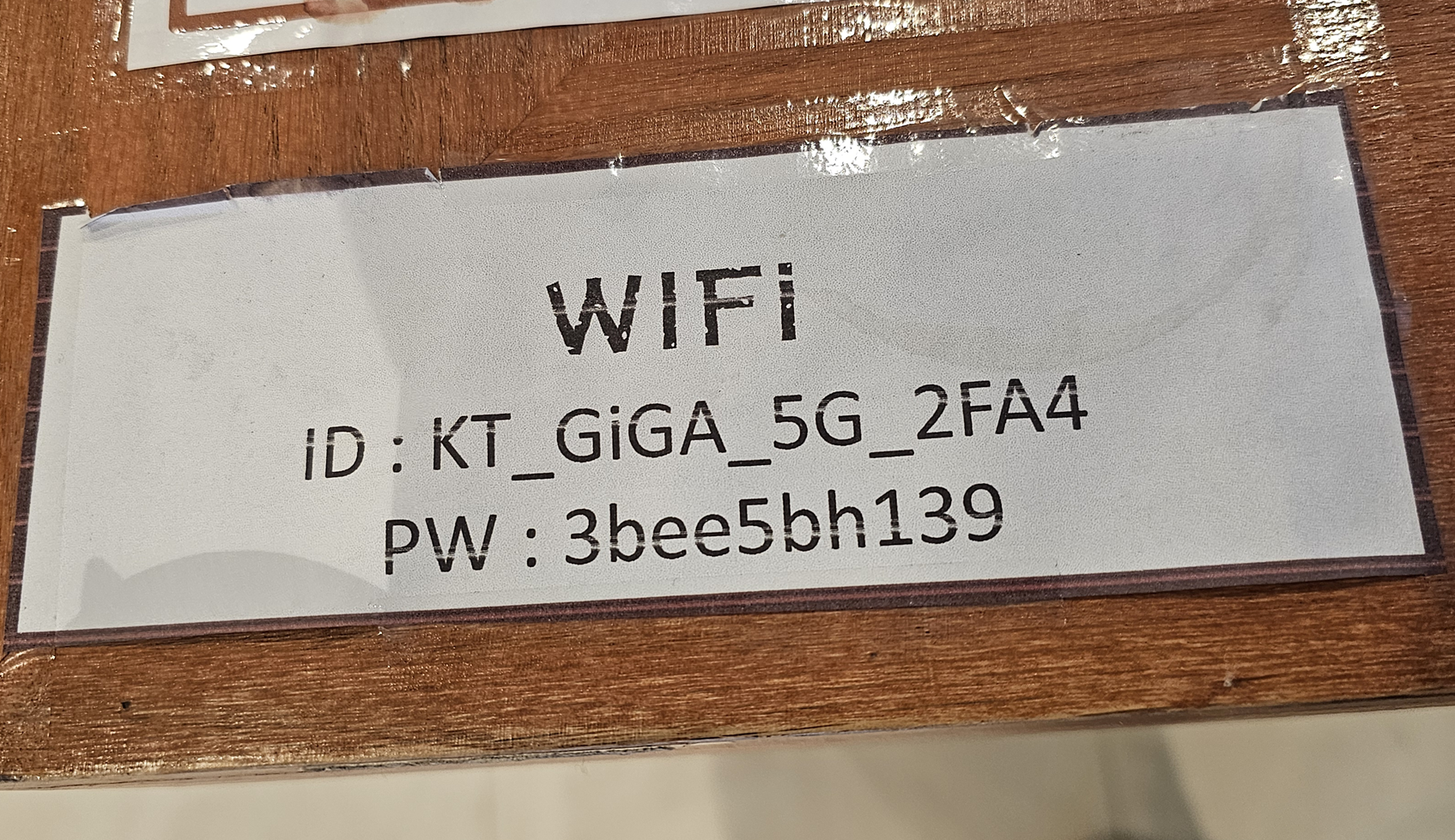 와이파이 비밀번호도 제공되므로, 식사 중 스마트폰 사용도 문제없습니다.