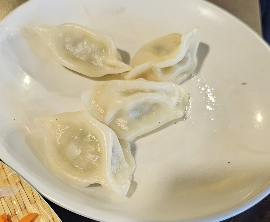 서비스로 나온 물만두는 독특한 향이 있었는데요, 의외로 괜찮았어요.