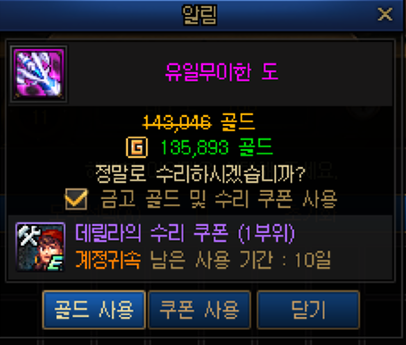 [던파 골드노가다 팁] 수리비 아끼는 방법! 유니크·레어 무기 똑똑하게 활용하기