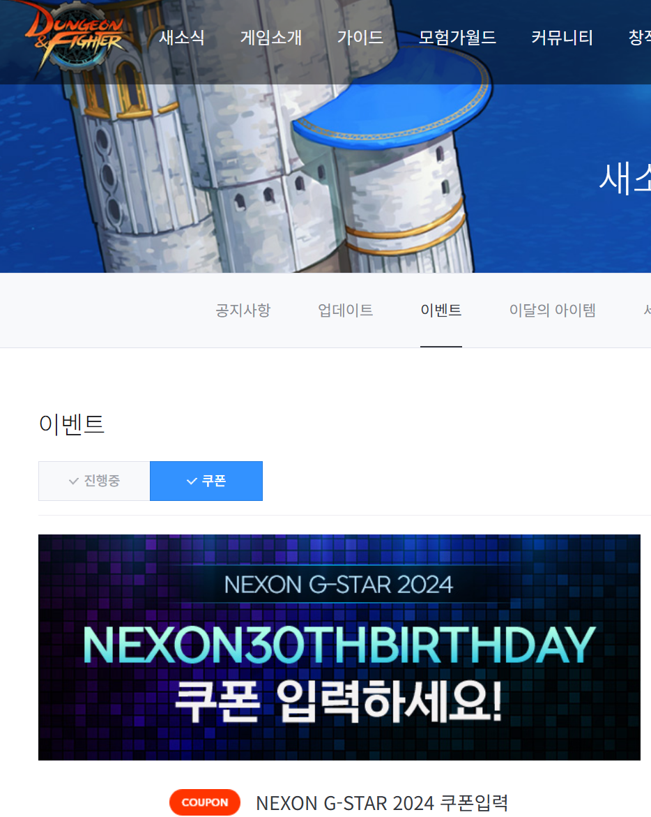던파 던전앤파이터 넥슨30주년 지스타2024 쿠폰