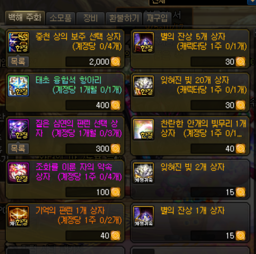 던파 던전앤파이터 백해주화 획득량 과 상점