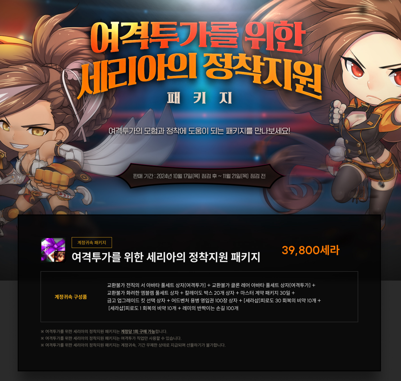 | 여격투가를 위한 세리아의 정착지원 패키지 | 39800세라 | 37412원 = 74,824,000 골드 |