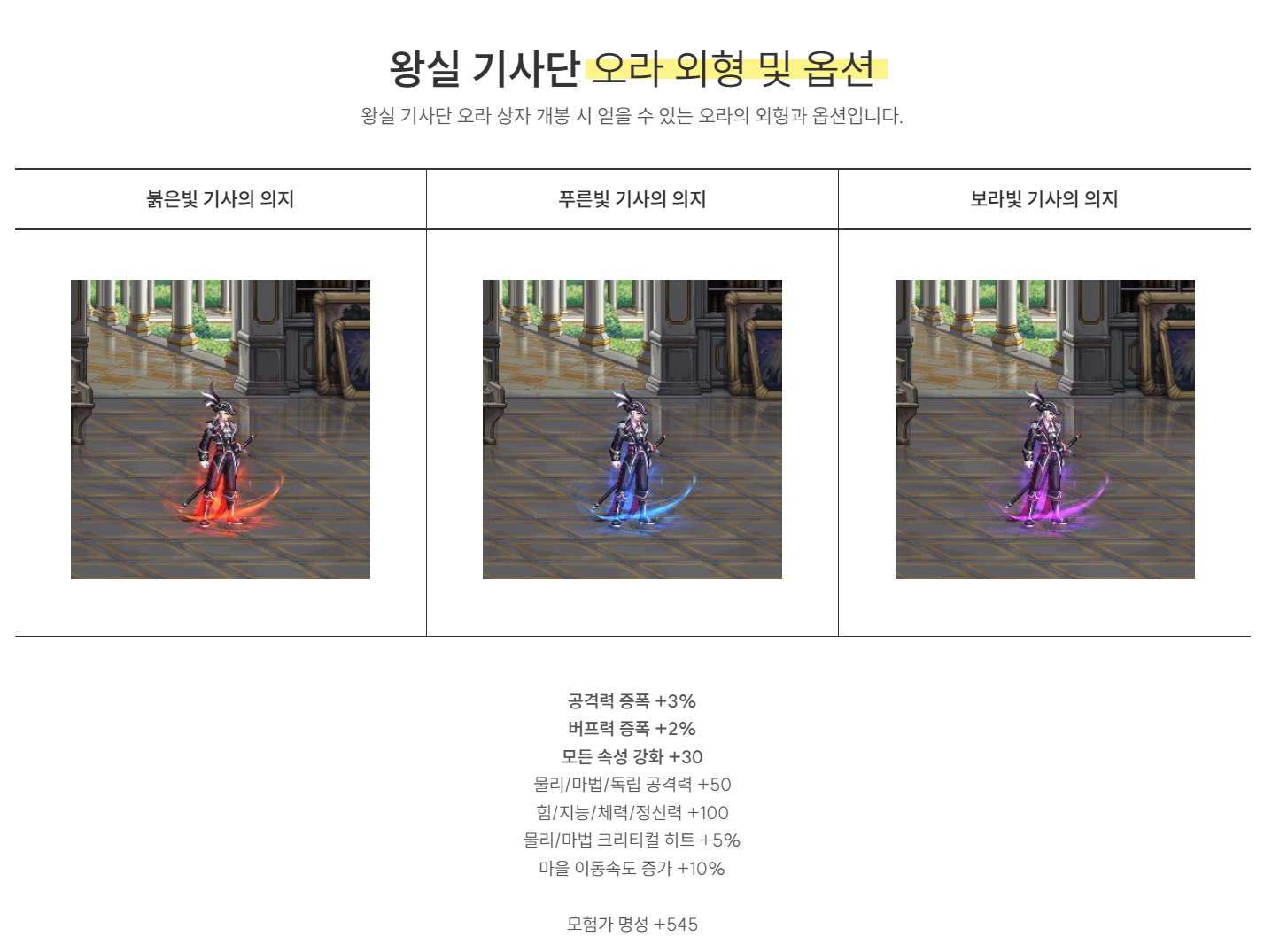| [EVENT]왕실 기사단 오라 상자 | 540만 골드 | 패셔니스타 준종결 급 |
