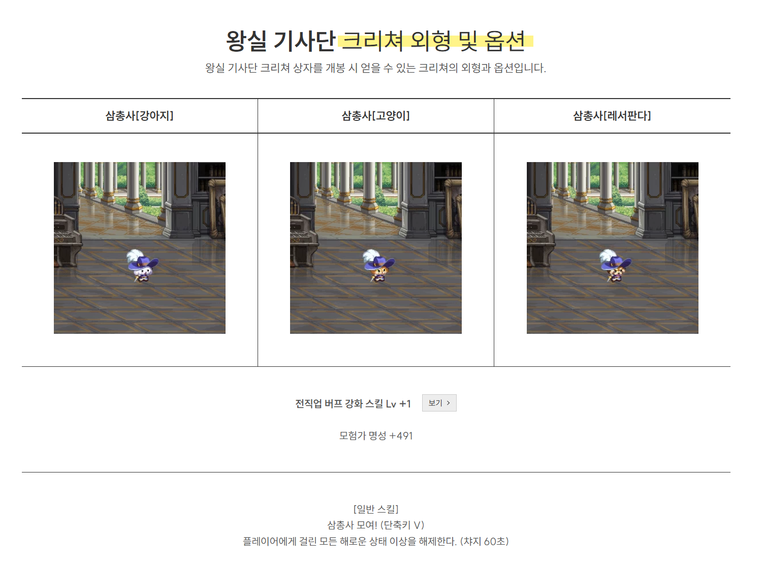| [EVENT]왕실 기사단 크리쳐 상자 | 360만 골드 | 버프 강화 스위칭 크리쳐 |