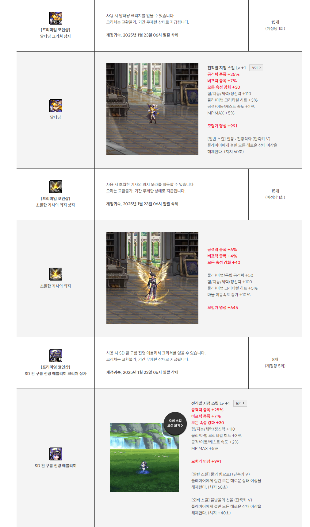 | 버프강화 +3 칭호 | 약 3000만 골드 | 첫 구매 혜택 |