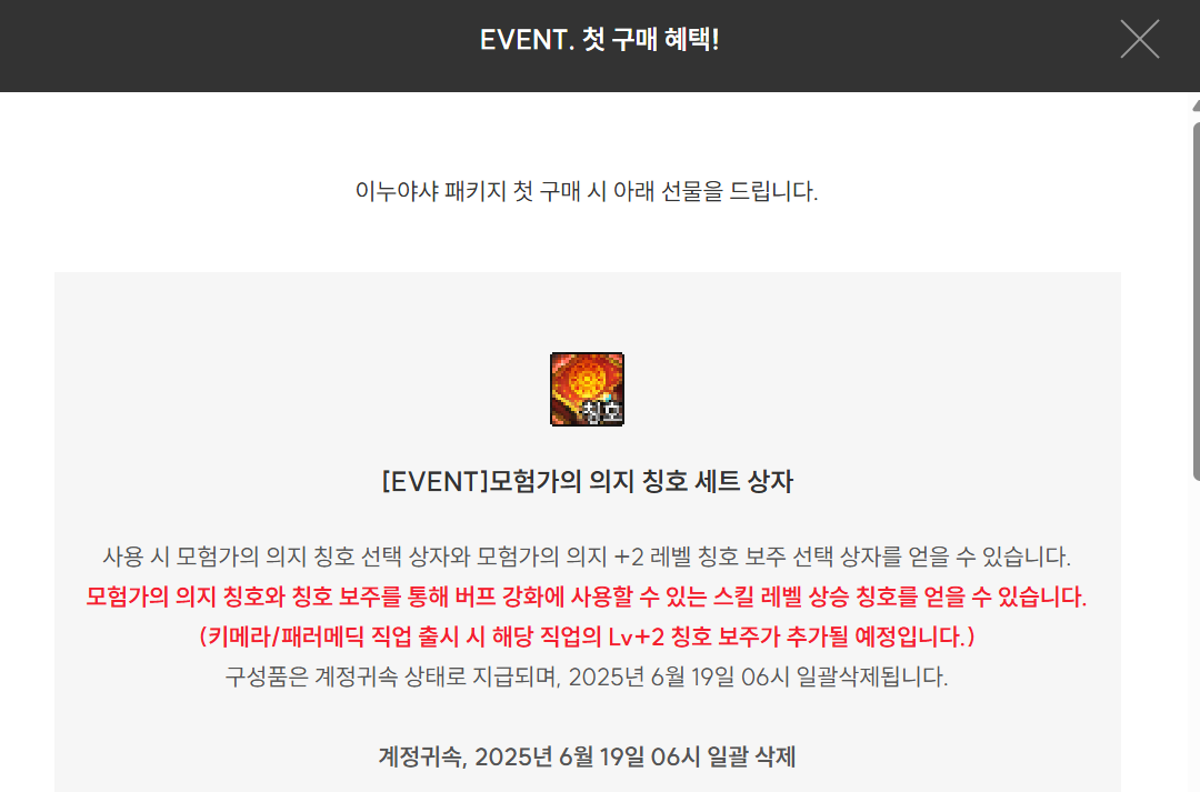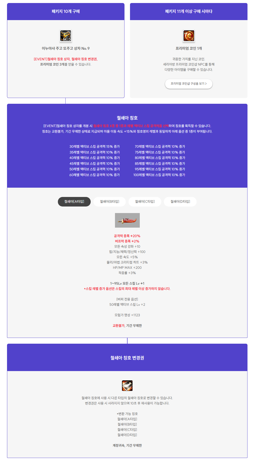 | [EVENT]철쇄아 칭호 상자, 철쇄아 칭호 변경권 | 6000만 골드 | 플래티넘 종결 칭호 |