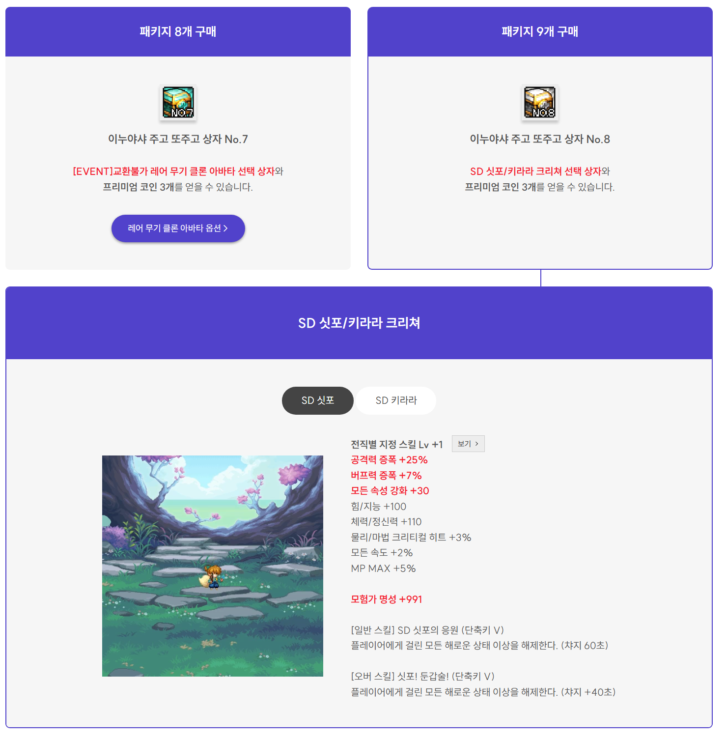 | SD 싯포/키라라 크리쳐 선택 상자 | 6500만 골드 | 에를리히 급 종결 크리처 |