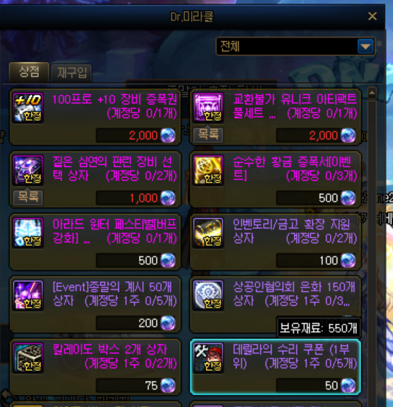 월 1회 구매가능한 짙편린 상자도 꼭 구매하시기 바랍니다.