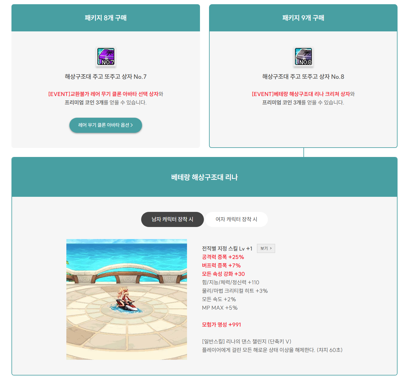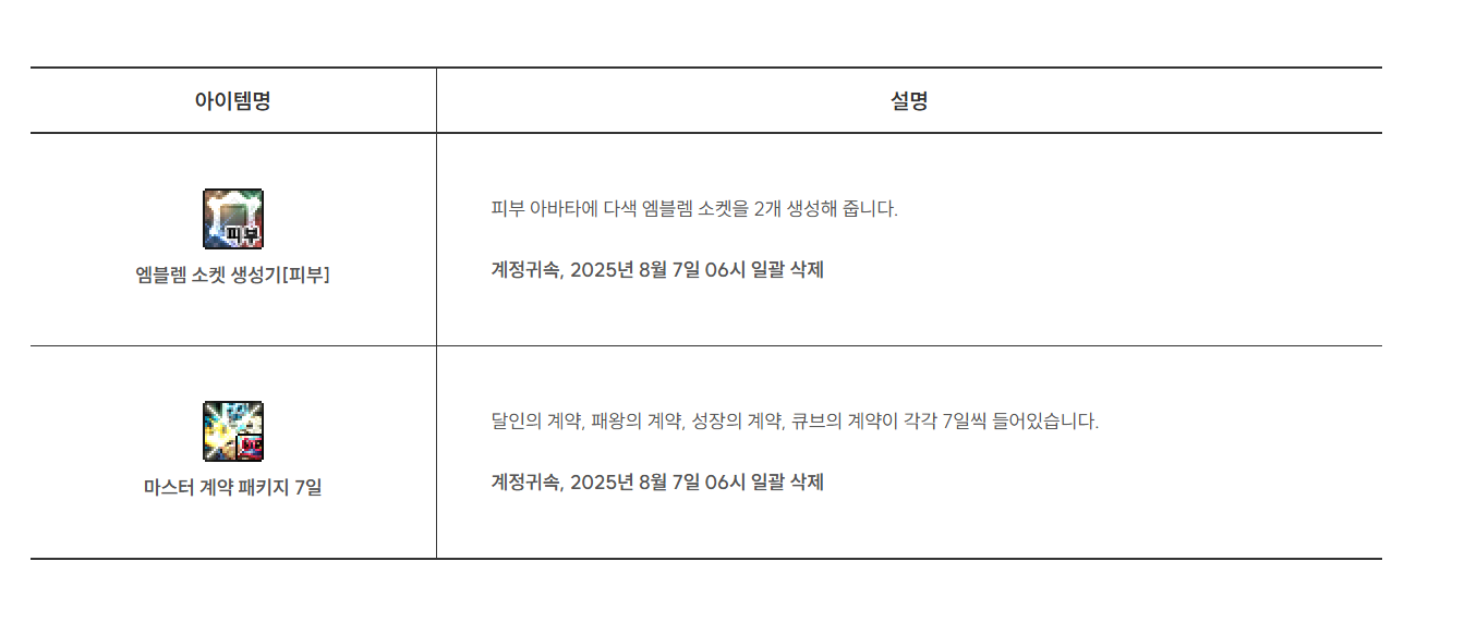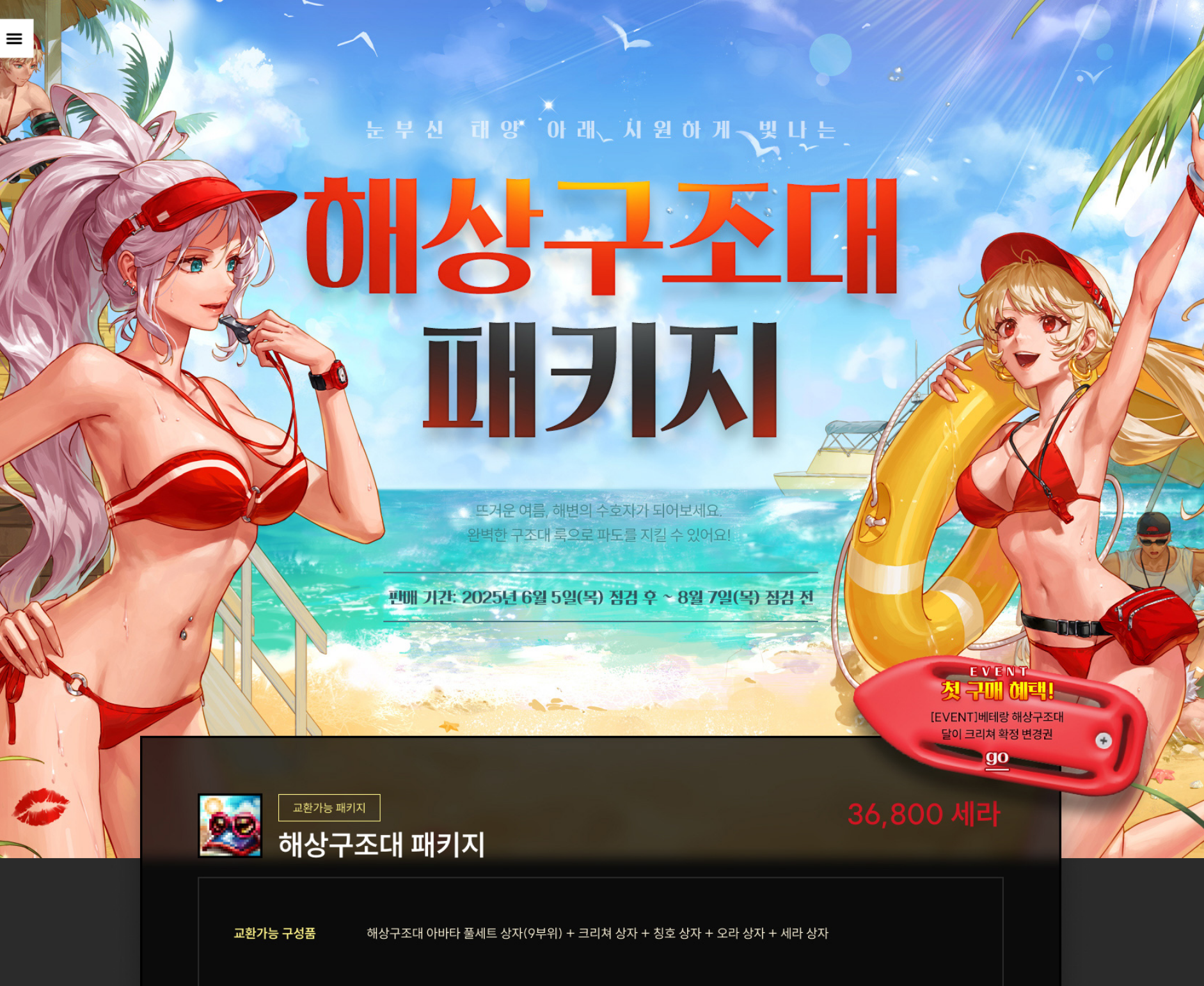 2025년6월5일 점검 후 ~ 2025년8월7일 점검 전 까지 판매하는 여름방핛 패키지 입니다.
