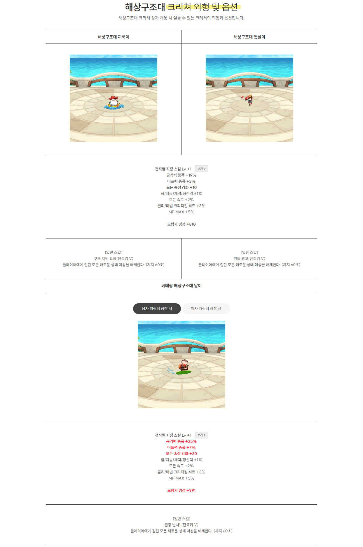 | 해상구조대 패키지 | 2450만 골드 | |