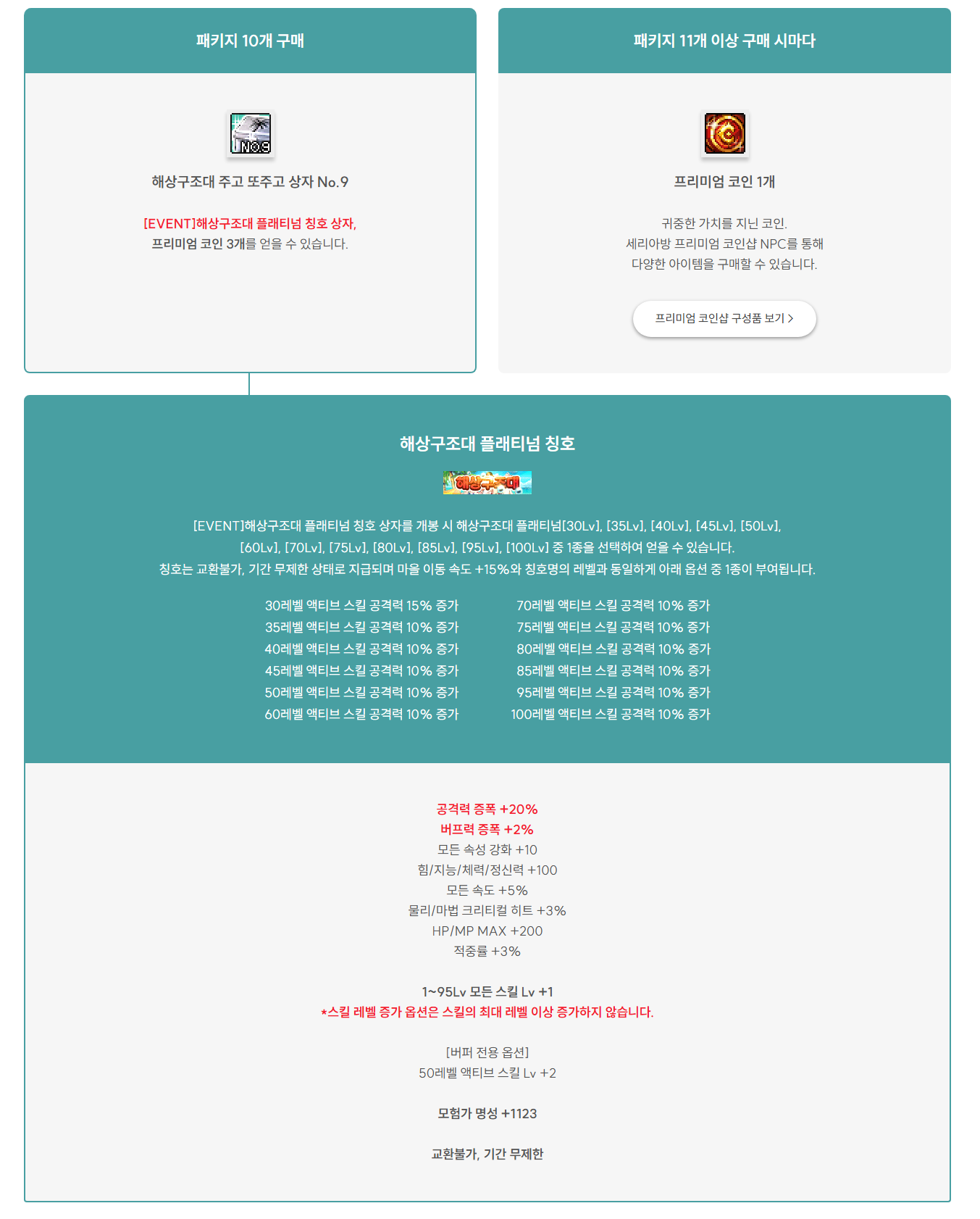 | [EVENT]해상구조대 플래티넘 칭호 상자 | 4300만 골드 | 플래티넘 종결 칭호 |