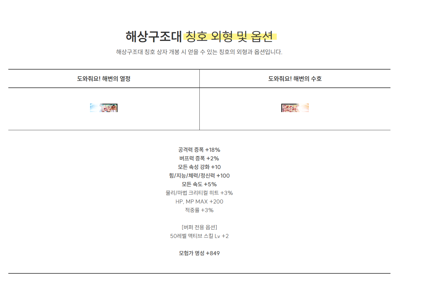 외형만 다르고 옵션은 동일한 칭호 입니다.
