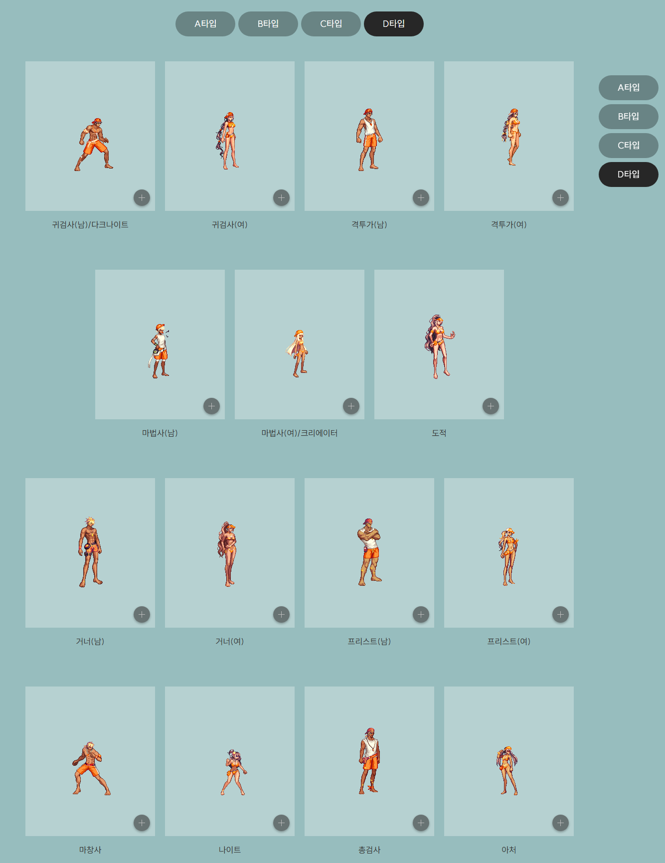 피부포함 9부위로 구성되어 있으며 A~D타입은 기본 패키지 구성에 포함되어있으며 E 타입은 주또주 패키지 4개구매시 얻을수 있습니다.