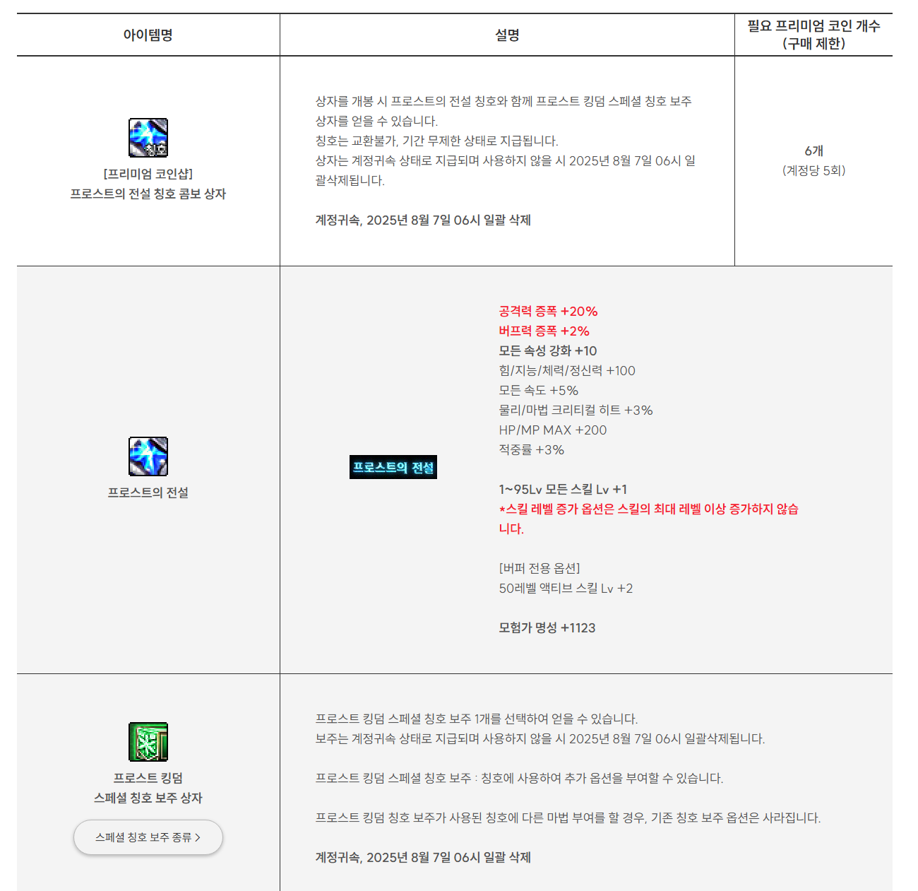 그리고 프리미엄 코인 수도 6개로 줄었는데요. 3000만정도 하는 칭호를 6개로 구매하는거니 개당 500만 골드의 가치를 가지고 있습니다. 물론 보주가격이 따로 더 들수도 있지만 간단히 계산하기위해서 보주상자는 제외했습니다.