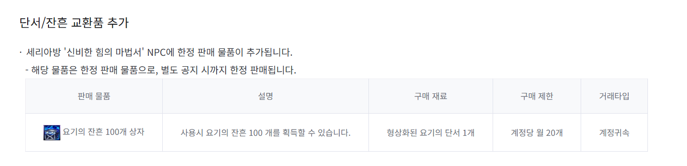 단서 1개로 잔흔 100개를 교환할수 있습니다 계정당 월20회 라고하는데요. 이수치는 추후 변경된다고 합니다.