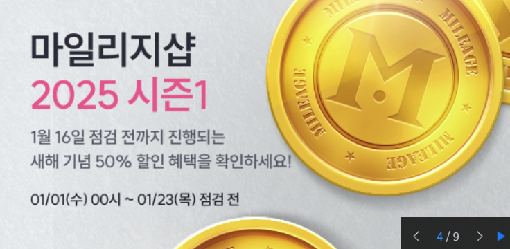 2025년 1월 1일 00시 ~ 2025년 1월 9일 점검 전 까지 진행하는 이벤트