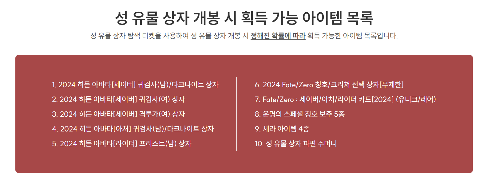 2024 Fate/Zero 리턴즈 패키지 히든 아바타