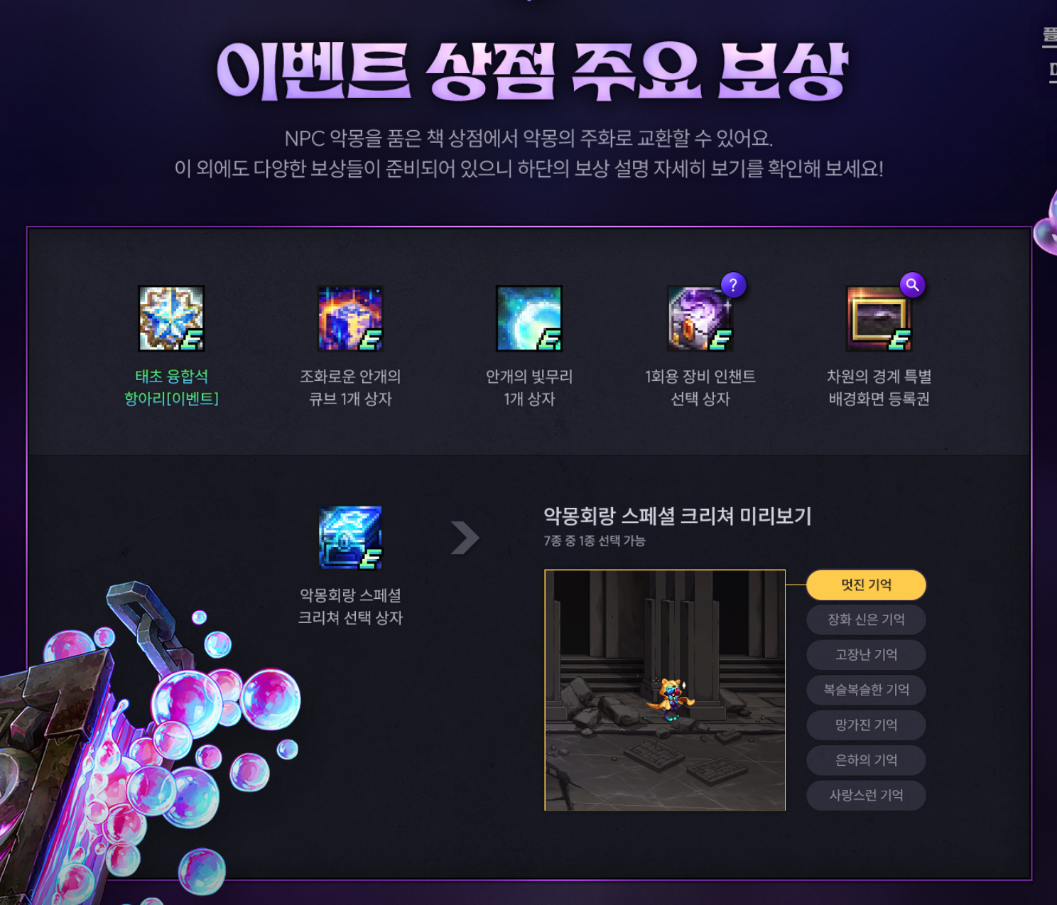 - 악몽회랑 스페셜 크리쳐 선택 상자