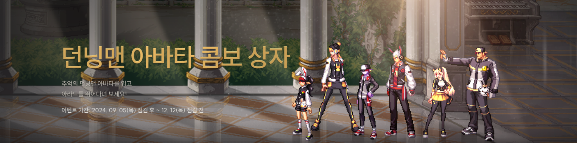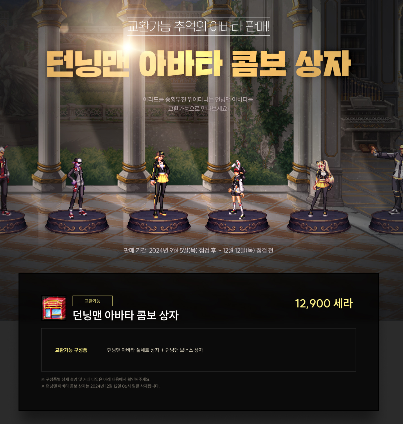 24년 9월 5일 점검 후 ~ 24년 12월 12일 점검 전 까지 판매하는 던닝맨 아바타 콤보 상자 입니다.