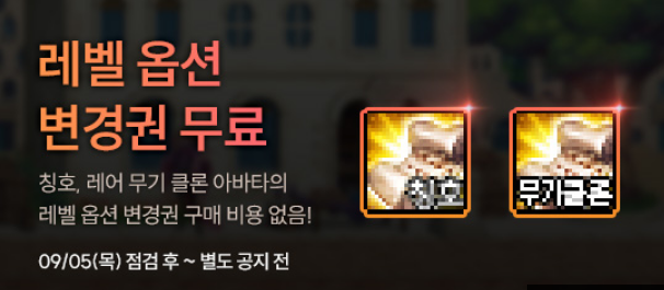 칭호, 레어 무기 클론 아바타 레벨 옵션 변경 무료