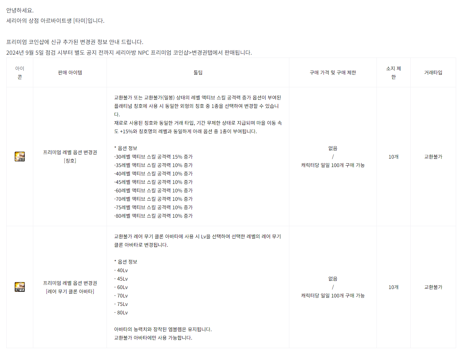 24년 9월 5일 점검 후 ~ 별도 공지 전 까지 DDC 에서 말했듯 레무클 과 플래티넘 칭호 의 선택레벨 옵션을 무료로 변경이 가능해 집니다.