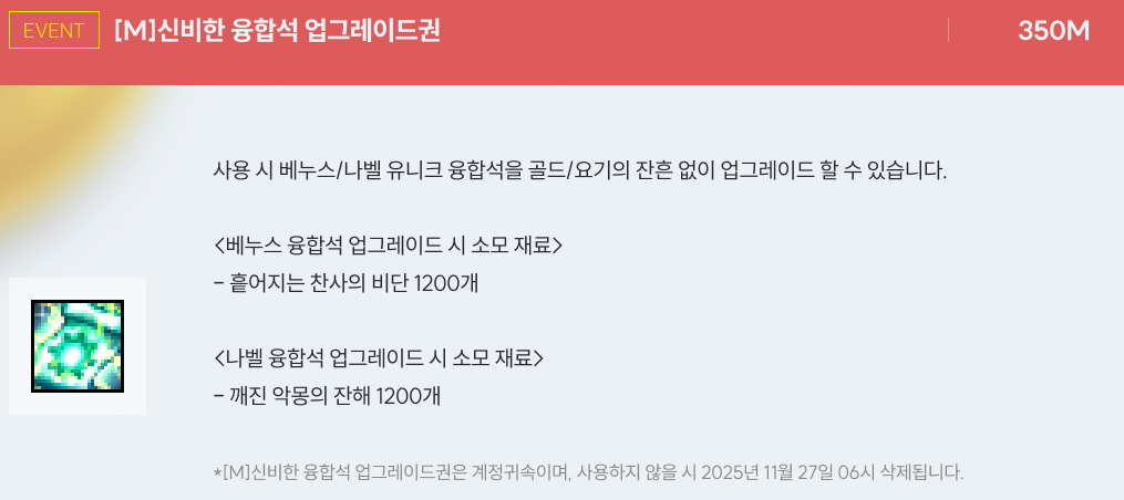 2025년 10월 16일 점검 후 ~ 2025년 11월 27일 점검 전 까지 진행하는 마일리지 샵입니다.