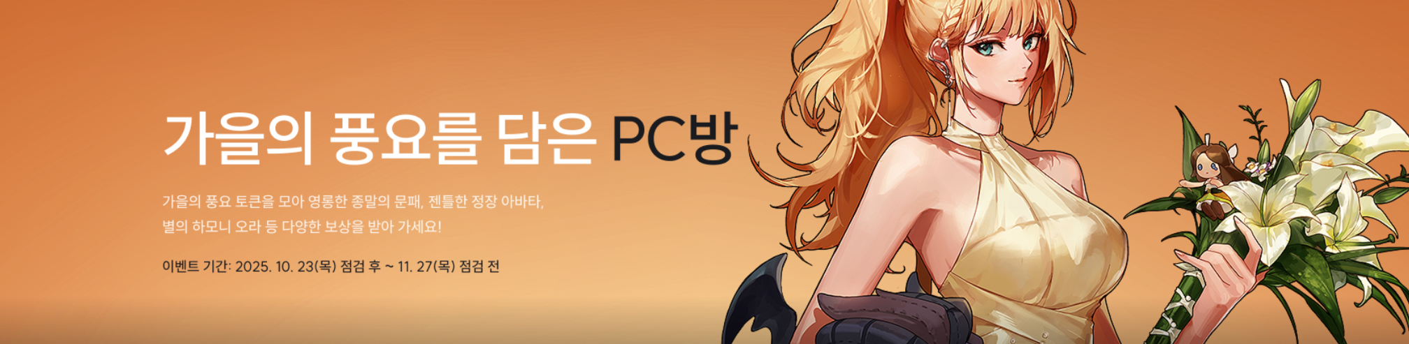 2025년 10월 23일 점검 후 ~ 2025년 11월 27일 점검 전 까지 진행되는 PC방 접속 이벤트로