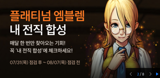 25년 7월 31일 점검 후~ 25년 8월 7일 점검 전 까지 진행되는 이벤트로 매달 말에 1주일간 진행되는 아바타 합성 이벤트 입니다. 20주년 이벤트로 직변권을 뿌릴것으로 알려졌으니 직변하실 분들은 미리미리 플티를 뽑아두시면 될것같네요.