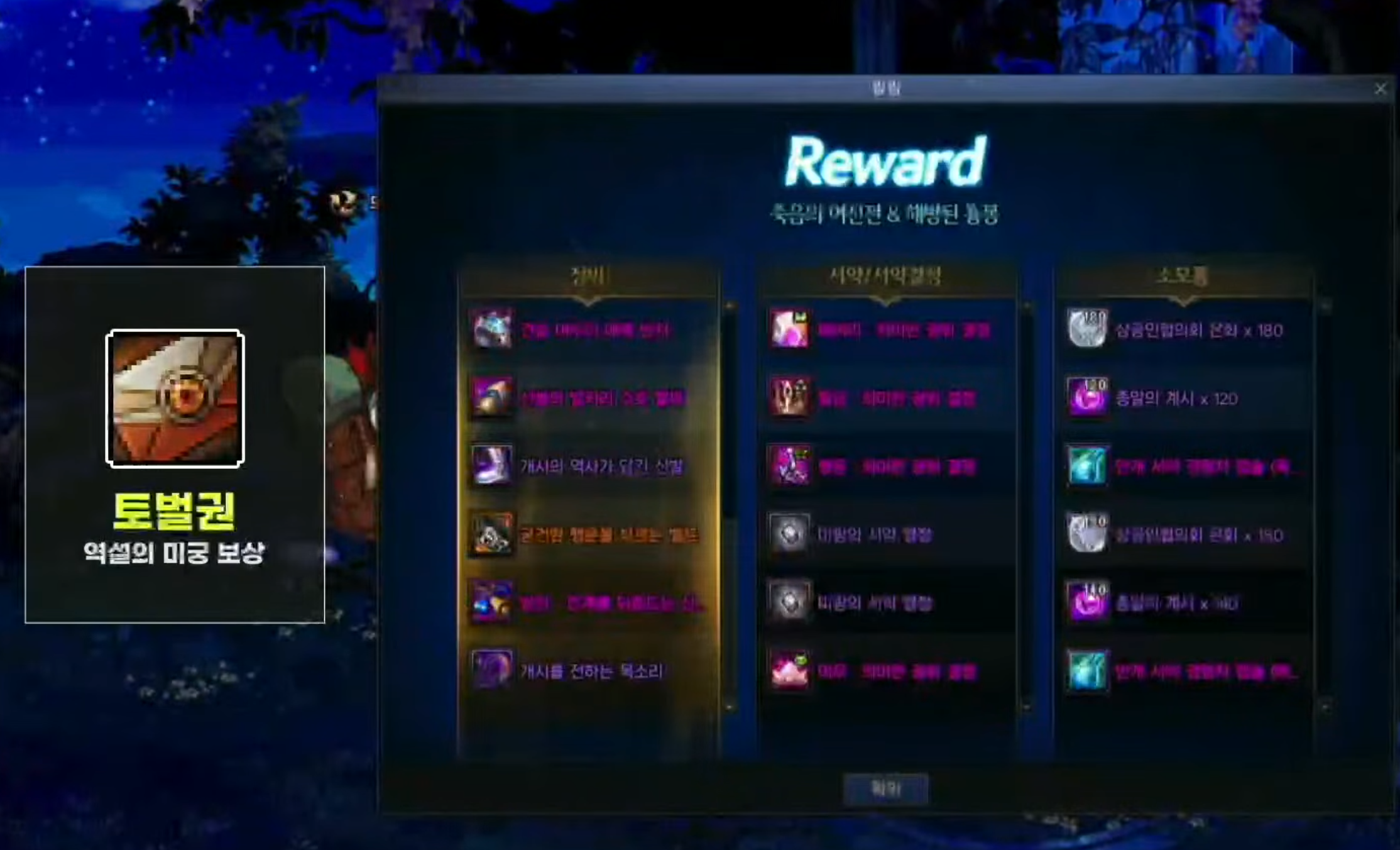 역대급 보상 아이템 목록