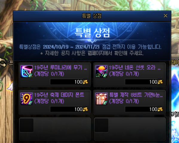 - 19주년 루미나리에 무기 아바타 선택 상자