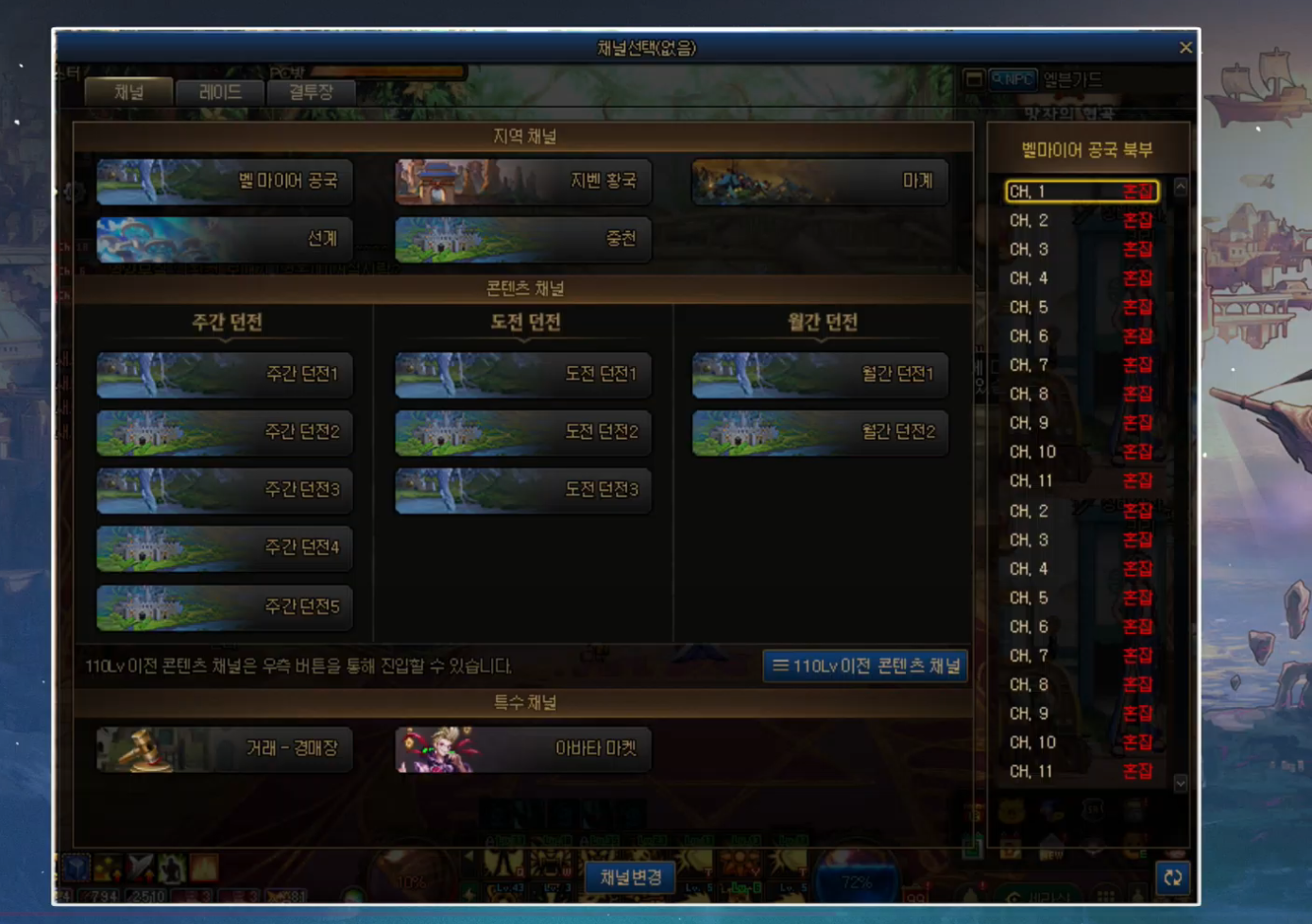 많이 말이 나오는 애기중 하나가 채널 인데 파밍컨텐츠 던전 과 도전컨텐츠 던전 의 분리 를 준비한다고 합니다. 주간퀘 , 월간퀘 등으로 채널이 나뉘는거 같네요. 노가리 채널인 선계11채는 과연 어떻게 댈까요??