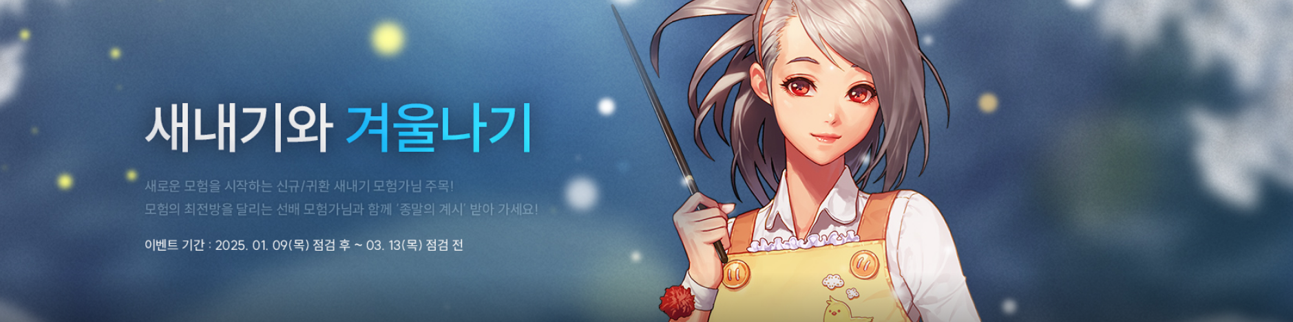 25년1월9일 점검후 ~ 25년 3월 13일 점검 전 까지 진행하는 이벤트로 기존의 이벤트 처럼 적정 던전을 돌아서 일일퀘스트, 반복 퀘스트 , 도전 퀘스트 등이 미션을 클리어후 보상을 받는 이벤트입니다.