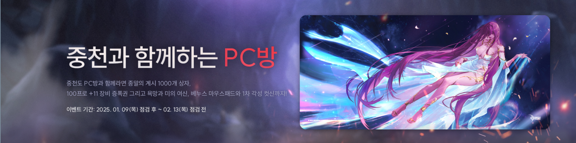 25년1월9일 점검후 ~ 25년 2월 13일 점검 전 까지 진행하는 이벤트로 PC방 점유율 증가를 위한 꿀타임 접속 이네트입니다.