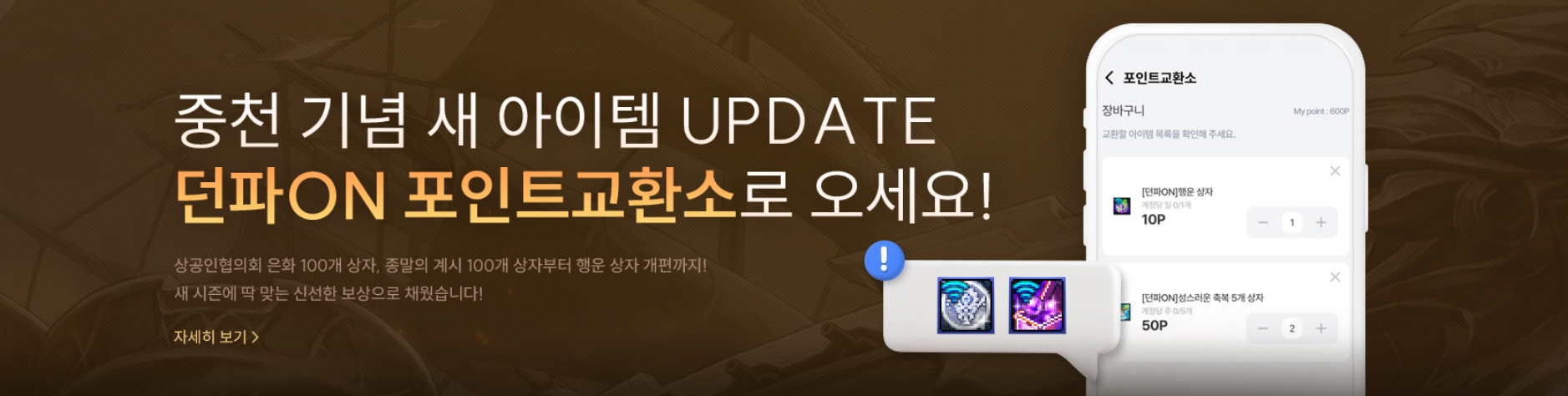 중천 기념 새 아이템 UPDATE 던파온 포인트 교환소