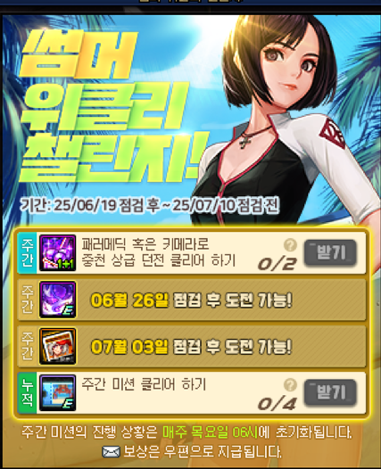 해당 신규 케릭으로 주간미션을 클리어하는 내용인데 주차별로 보상이 지급됩니다.