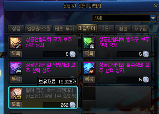 상공인협의회 은화로 주당 20개의 상자를 구매할 수 있습니다. 상자를 개봉 후 상점에 판매하여 골드를 얻는 방식인데요.