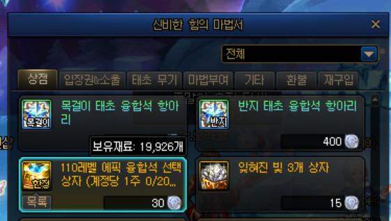 TIP: 에너지 코어가 부족하면 은화로 구입 후 초전도 에너지 코어로 교환하면 됩니다.