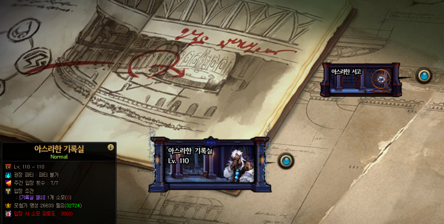 - 아스라한/안개신 던전을 많이 돌았다면 기록실 열쇠가 쌓여 있을 것