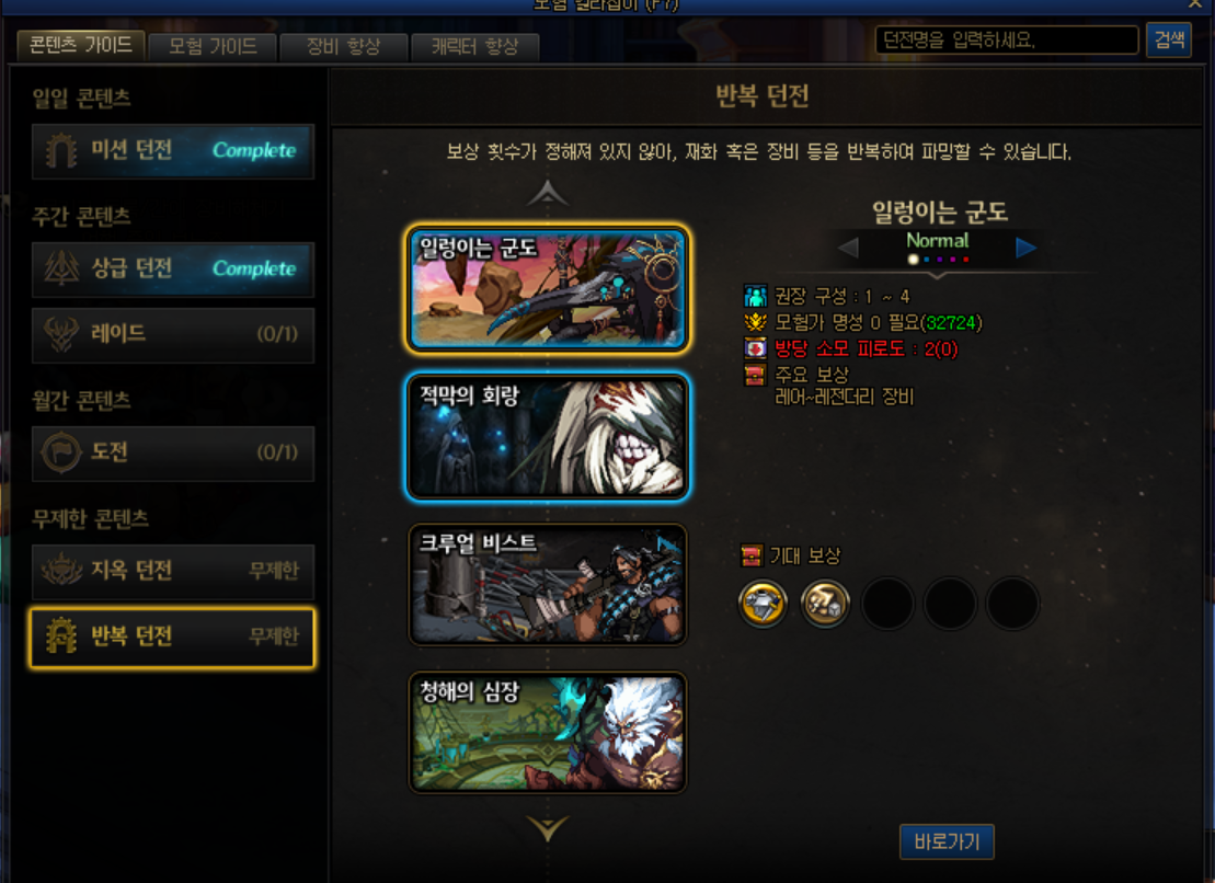 - TIP: 에픽 장비가 4~5개 쌓이면 중간에 던전을 나오는 것이 효율적